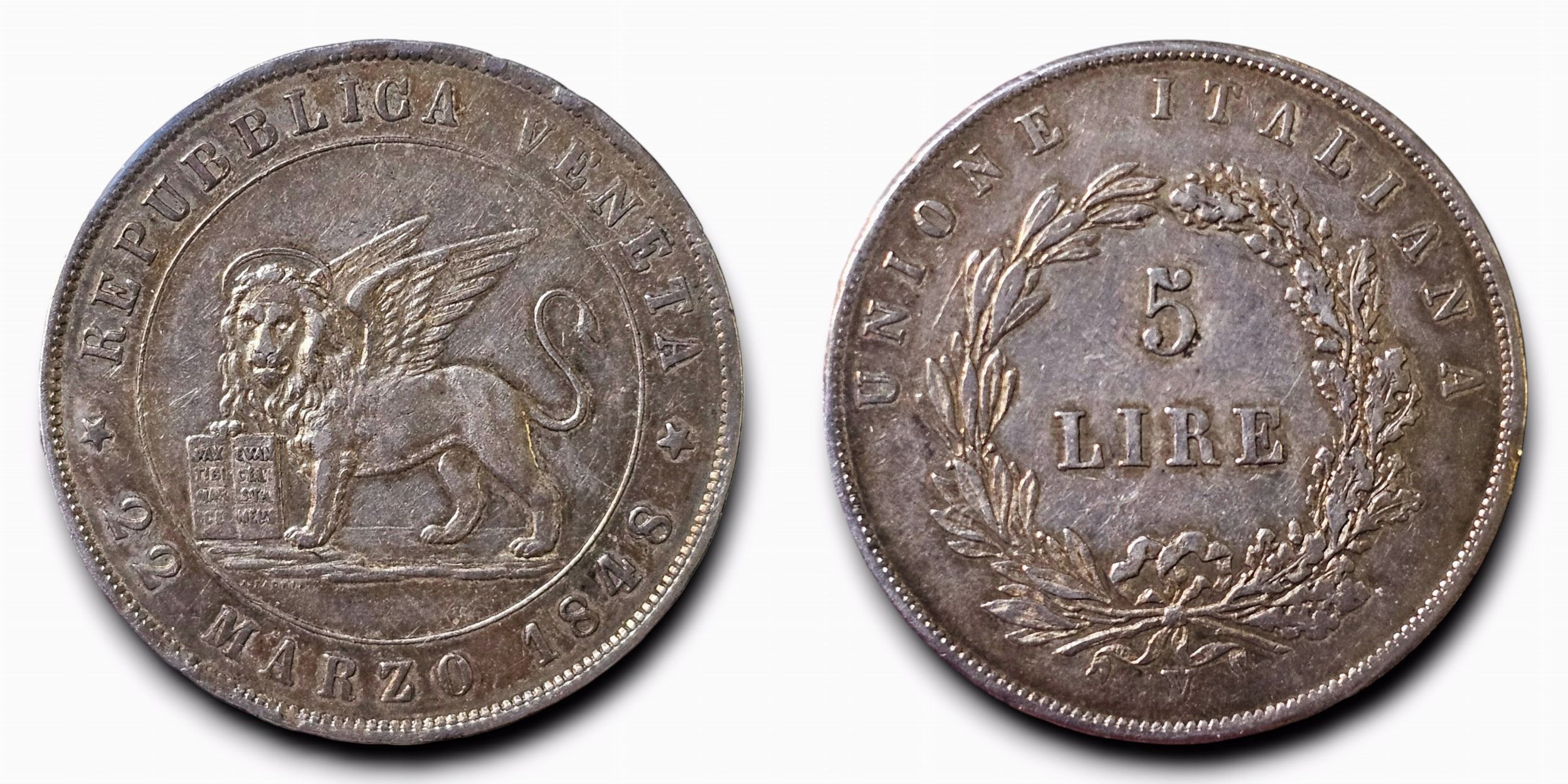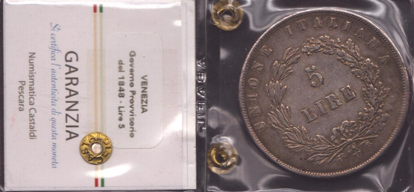 VENEZIA. Governo Provvisorio di Venezia (1848-1849). 5 lire 1848, I Tipo 22 Marzo. [..]