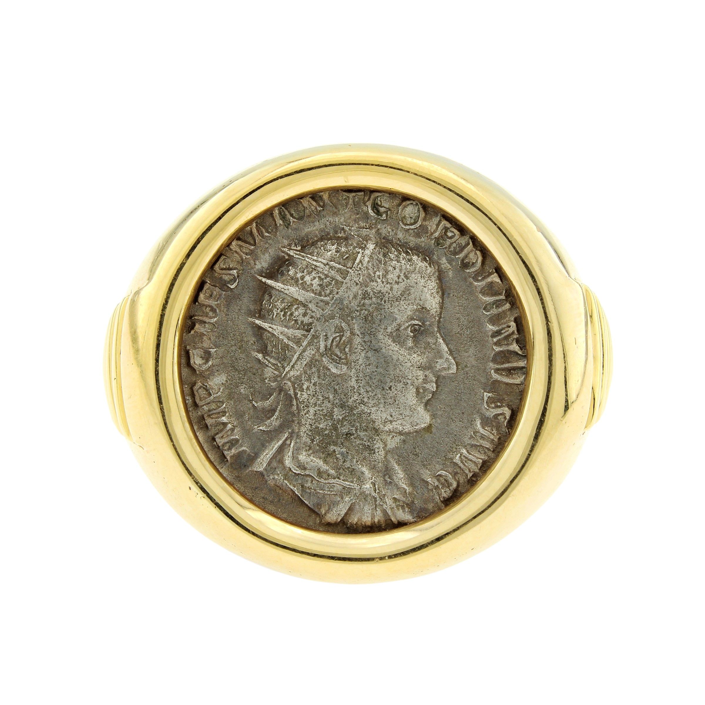 firmato, anni 90 circa in oro giallo 18kt con moneta romana in argento, misura 19