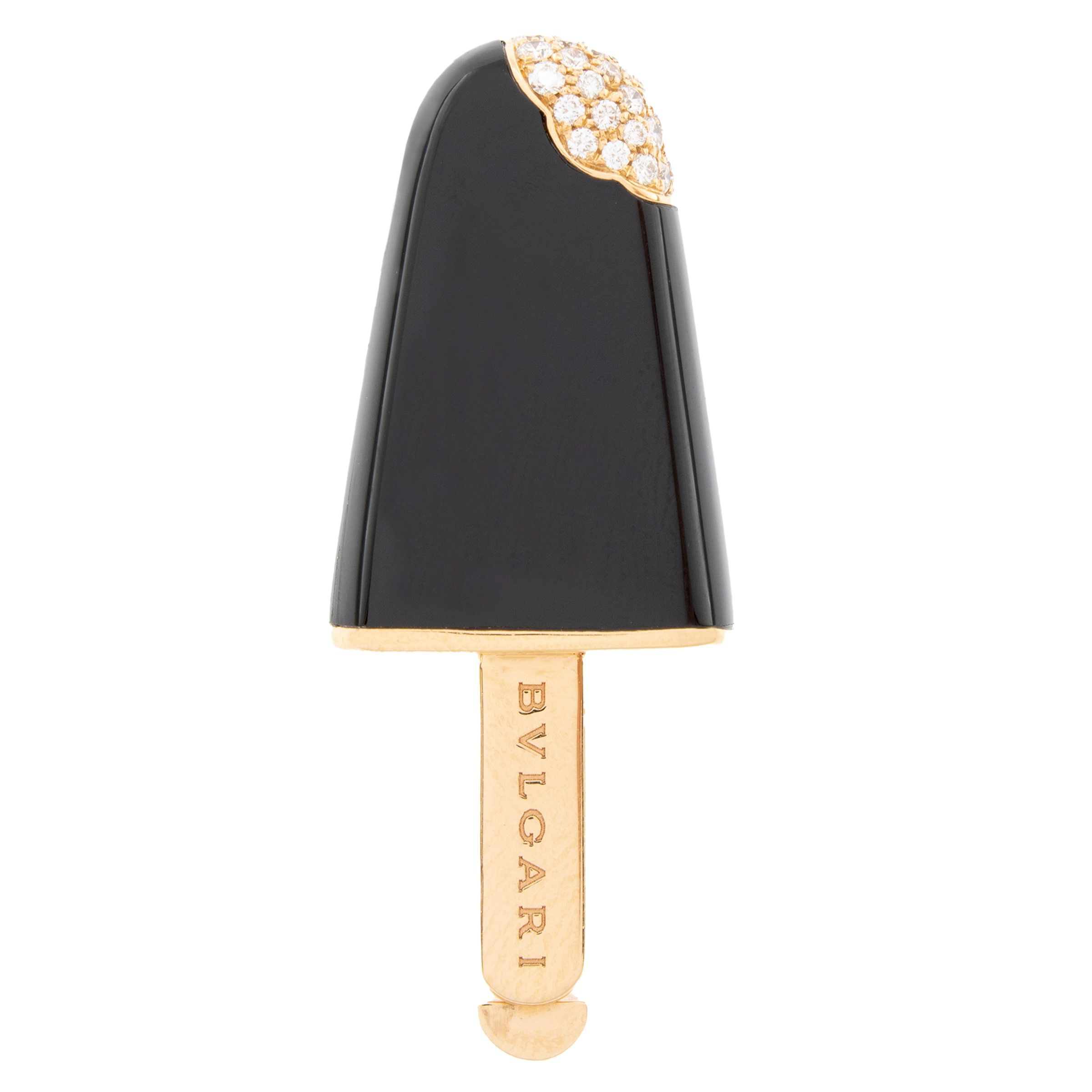 firmata e numerata, anni 2000 circa in oro rosa 18kt onice nero e diamanti taglio brillante ct 0,40 circa, dimensioni 3,9x1,6 cm.