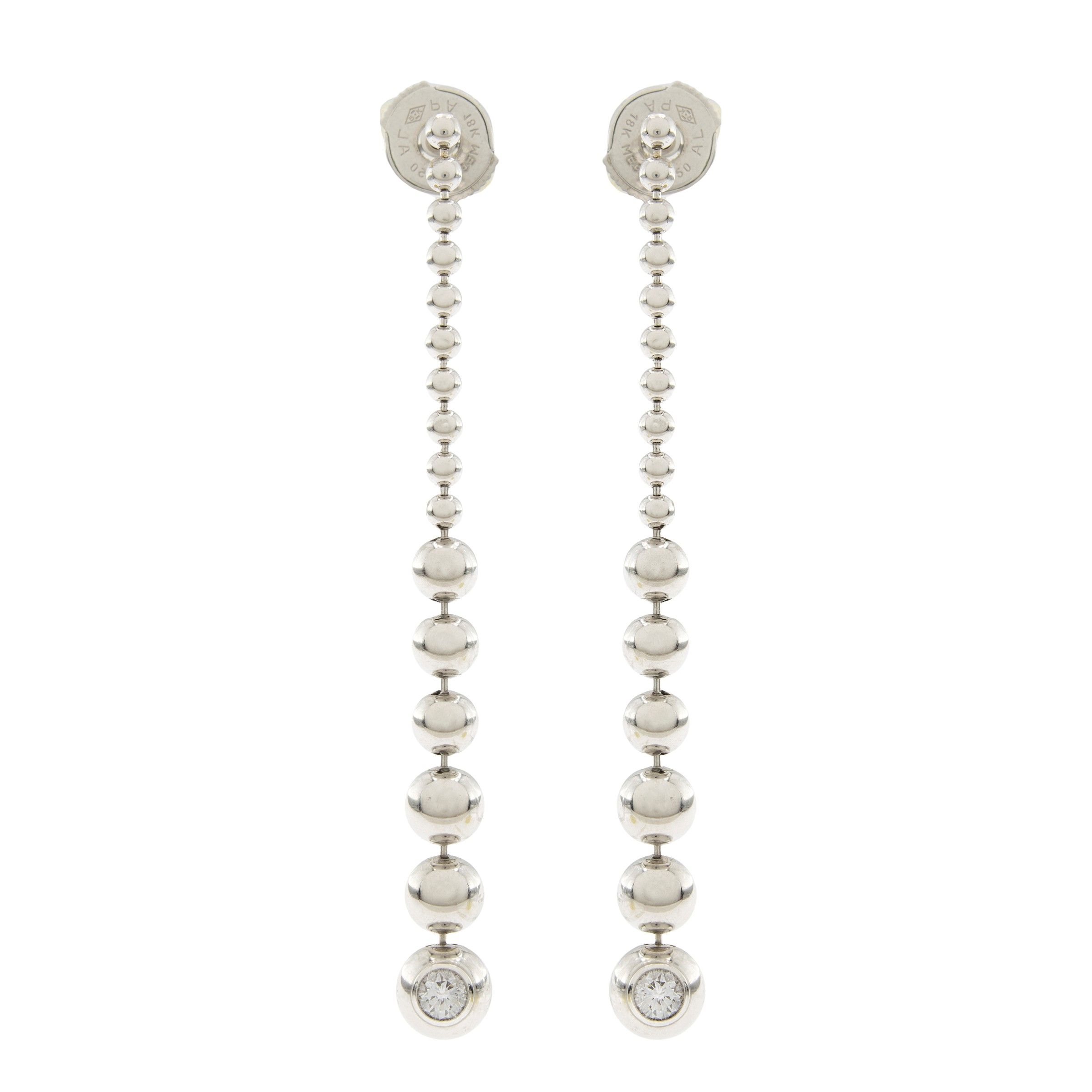firmati, anni 90 circa sfere a gradazione in oro bianco 18kt e due diamanti taglio brillante ct 0,40 circa, lunghezza 5,5 cm. completi di scatola e di certificato di autenticità
