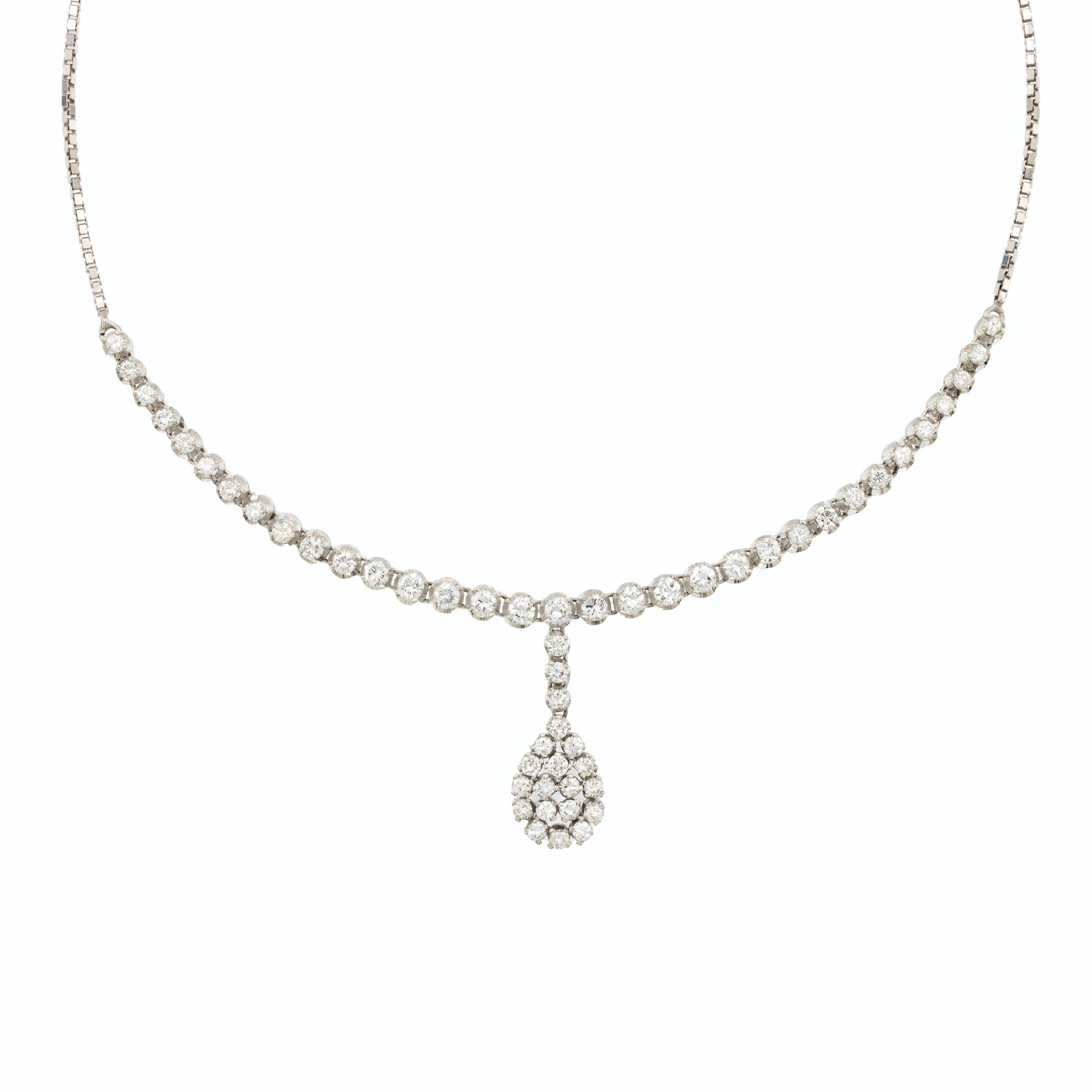 taglio brillante ct 3 circa disposti a gradazione con pendente centrale, lunghezza 50 cm.