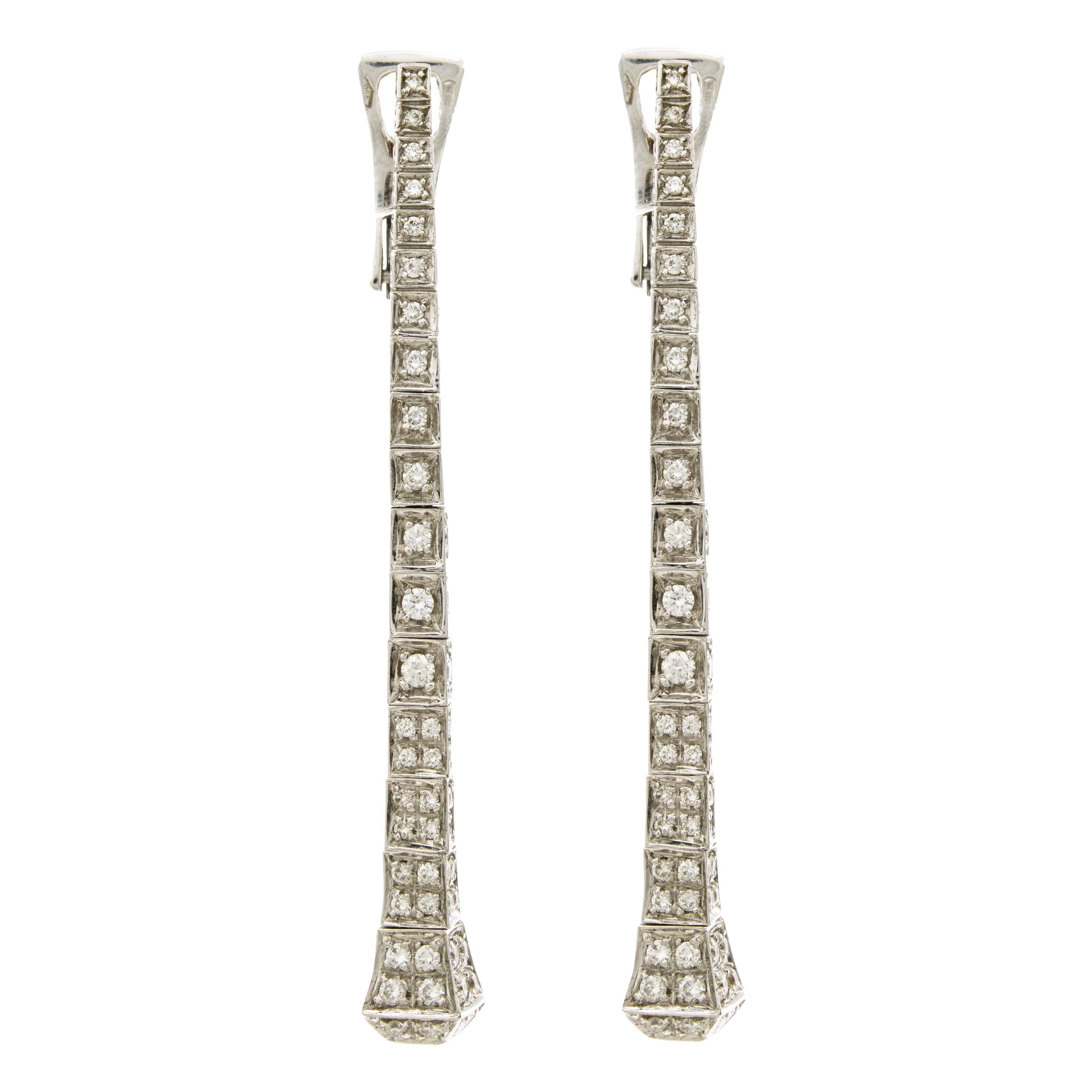 firmati in oro bianco 18kt e diamanti taglio brillante ct 2,80 circa, lunghezza 6 cm.