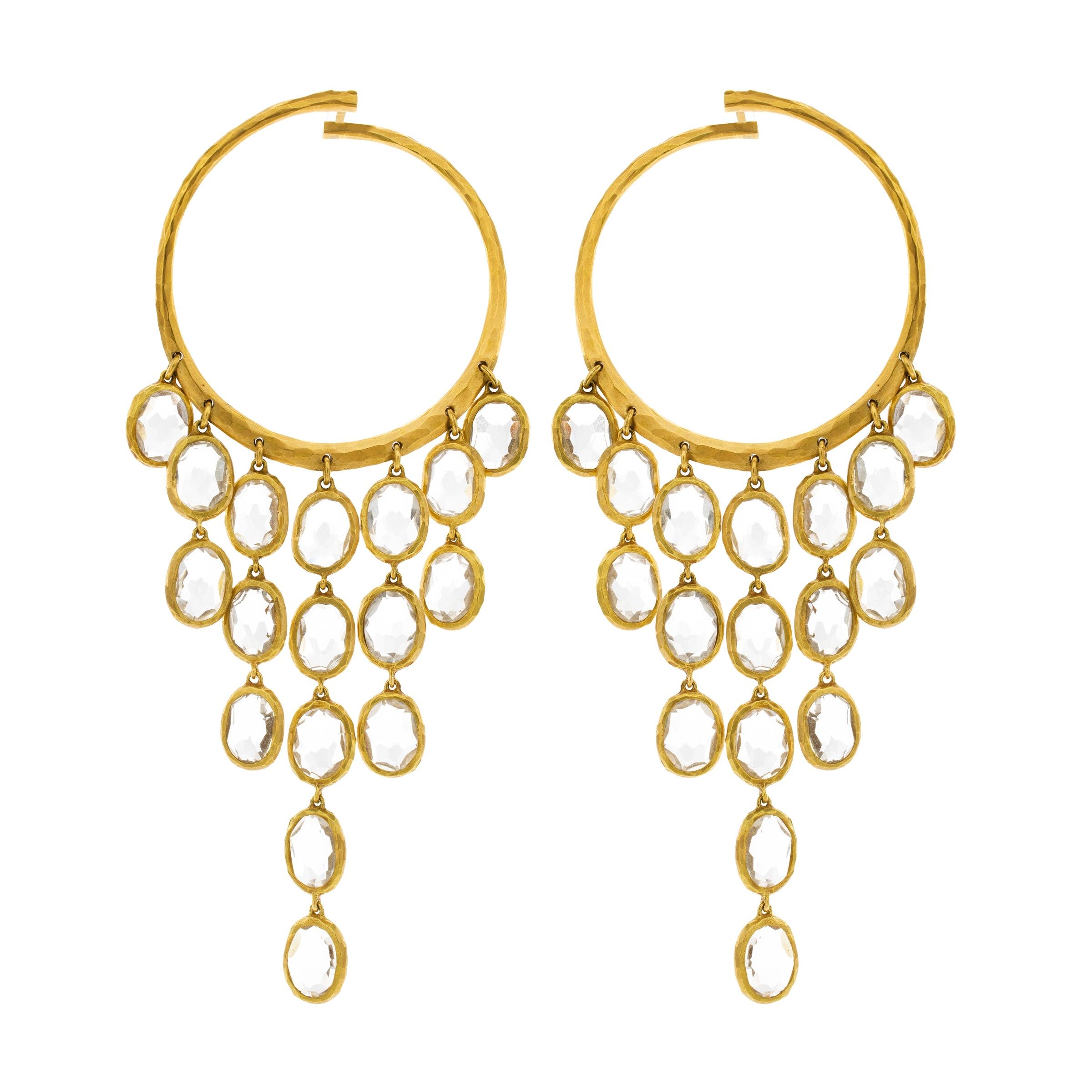 firmati in oro giallo 18kt e cristallo di rocca taglio ovale misto, lunghezza 8,5 cm.