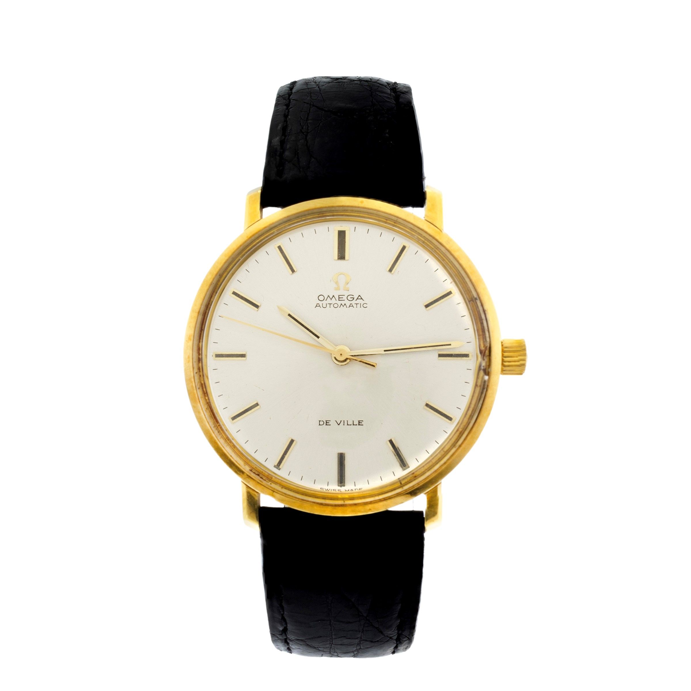 peso 42 gr. anni 70 circa in oro giallo 18kt, ref. 165033 - 33515697, cassa tonda 34 mm. quadrante argentato con indici, vetro difetto, movimento meccanico a carica automatica, calibro 552, cinturino con fibbia originale placcata, cassa, quadrante e movimento firmati