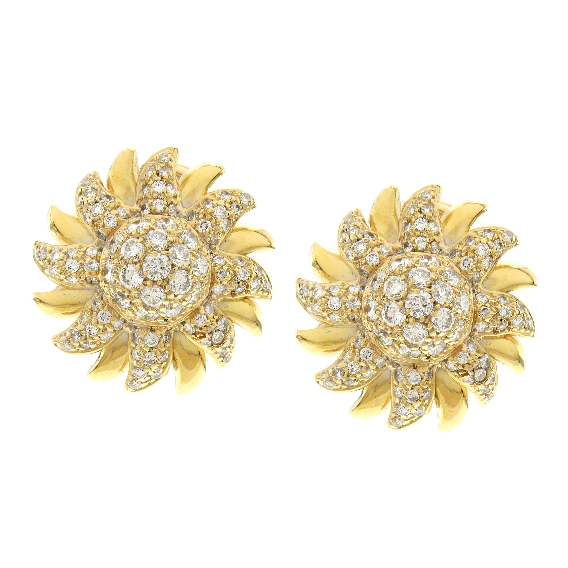 Orecchini Girasole in oro giallo 18kt e diamanti
