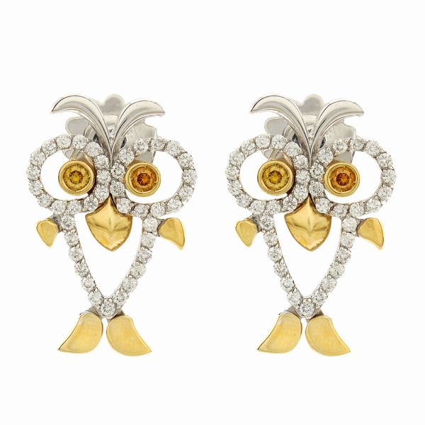 diamanti taglio brillante ct 1,50 circa, occhi con zaffiri gialli, dimensioni 2,5x1,7 cm.