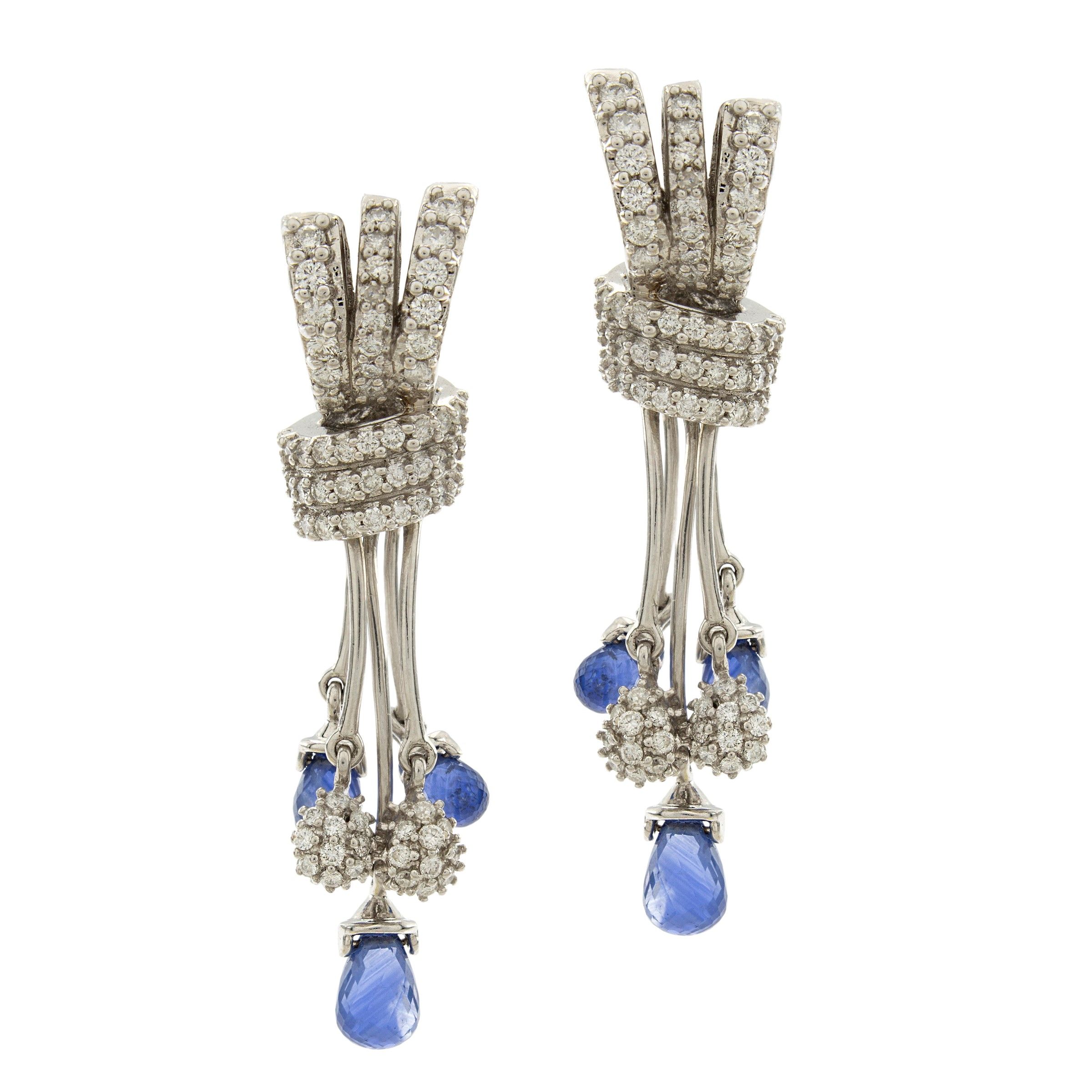 diamanti taglio brillante ct 1 circa e zaffiri taglio briolet ct 0,80 circa, lunghezza 4 cm.