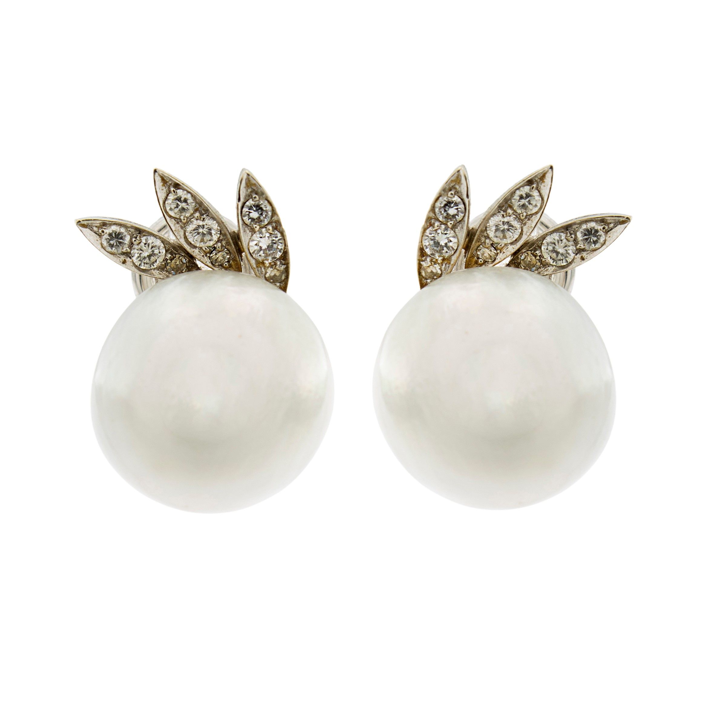 firmato perle South Sea di 15 mm. e diamanti taglio brillante ct 0,25 circa