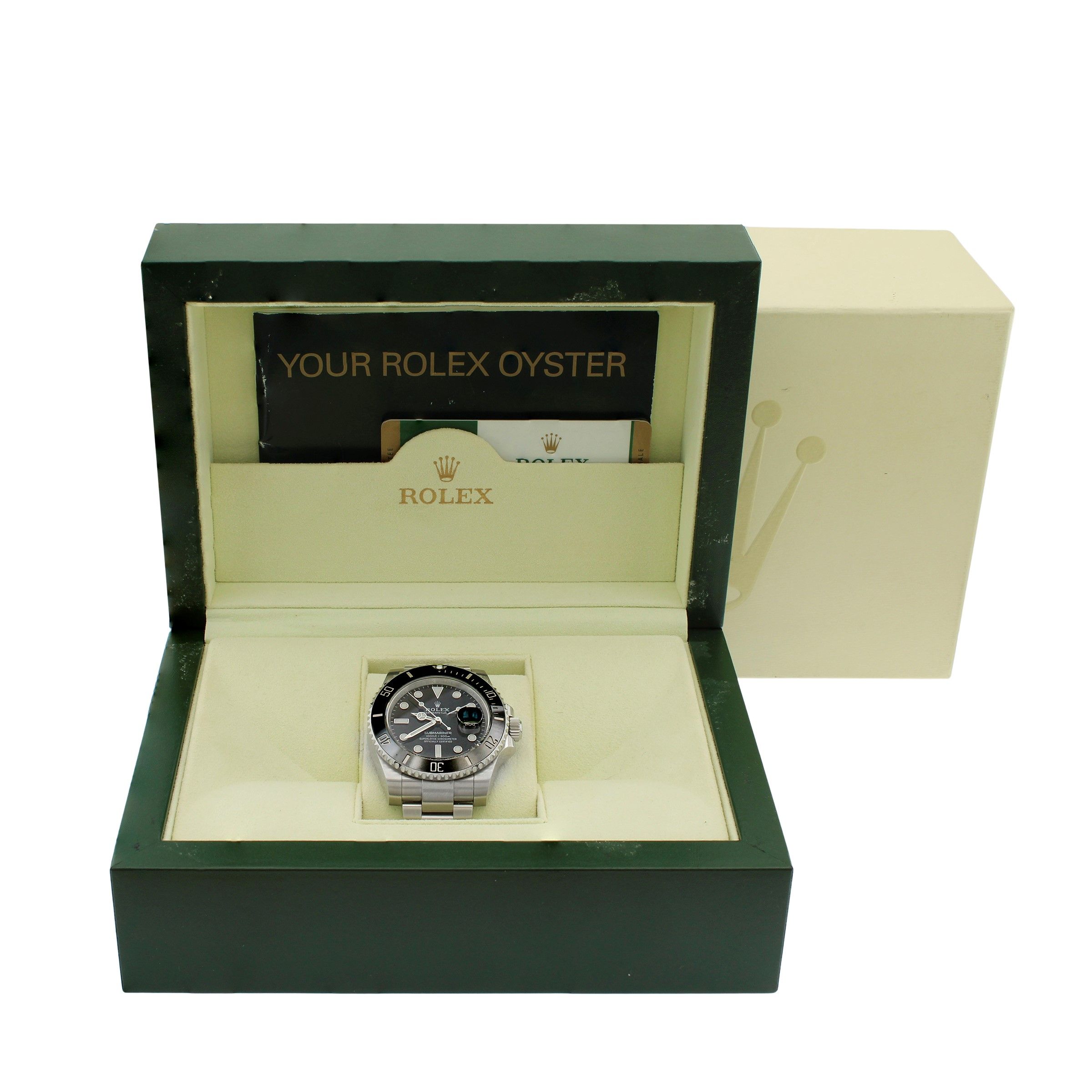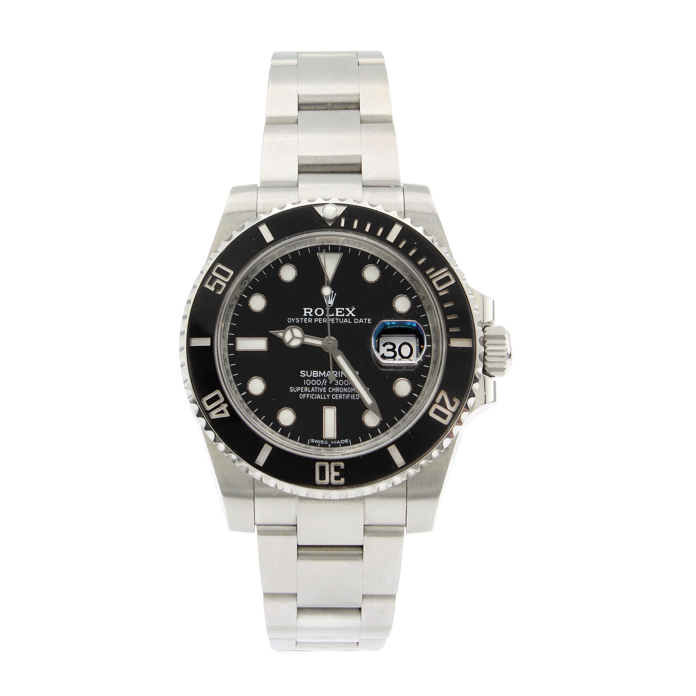 anno 2014 in acciaio ref. 116610LN, cassa 40 mm. quadrante nero con indici, lunetta unidirezionale in ceramica, vetro zaffiro, movimento meccanico a carica automatica, calibro 3135, bracciale oyster in acciaio con chiusura deployante, cassa quadrante e movimento firmati, completo di scatola, garanzia e una maglia supplementare