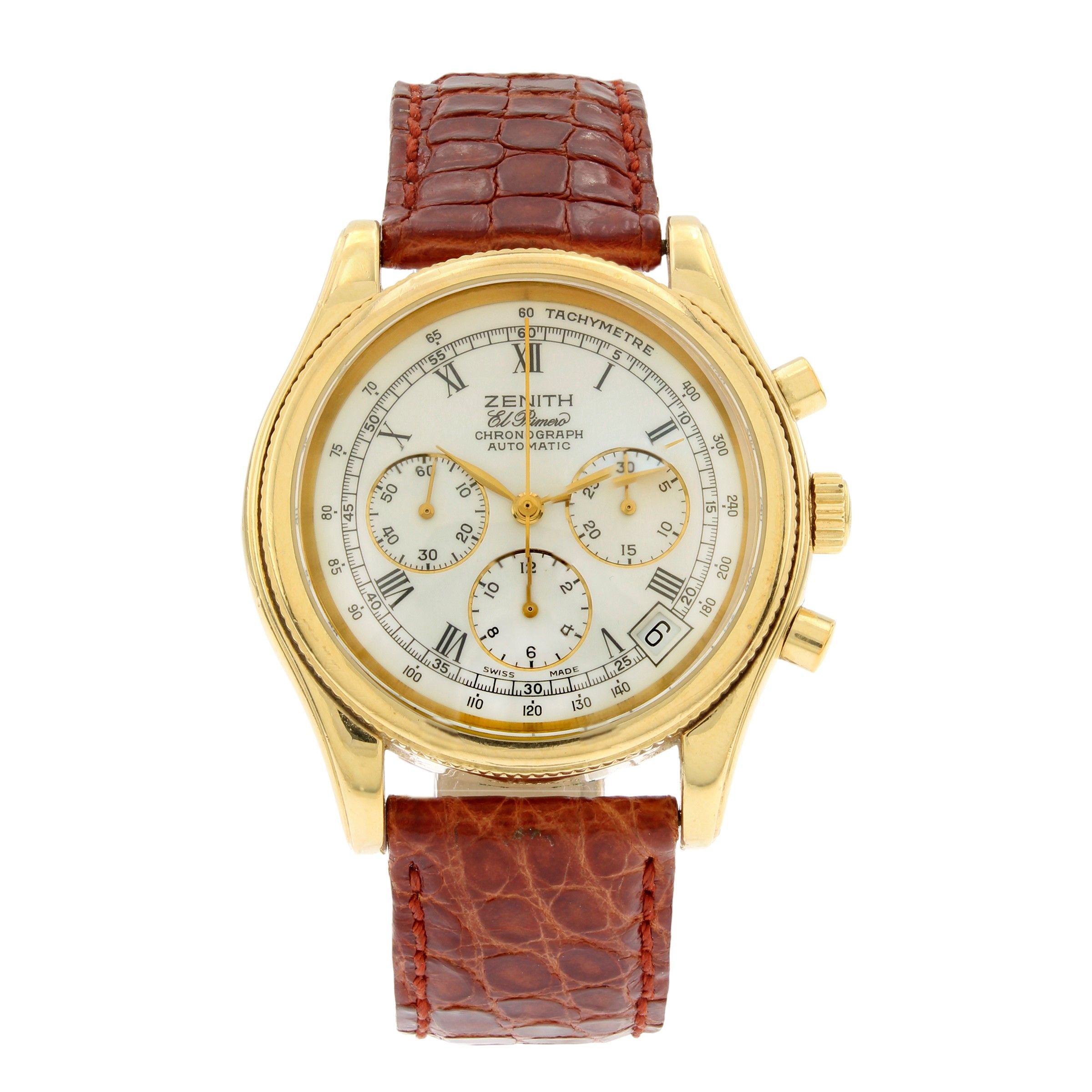 anni 90 circa in acciaio e laminato oro, ref.20-0210.400, cassa tonda 39 mm. quadrante bianco con numeri romani, tre quadranti ausiliari per il cronografo, datario ore tra le 4 e 5, movimento meccanico a carica automatica, calibro 400, cinturino con fibbia, cassa, quadrante e movimento firmati