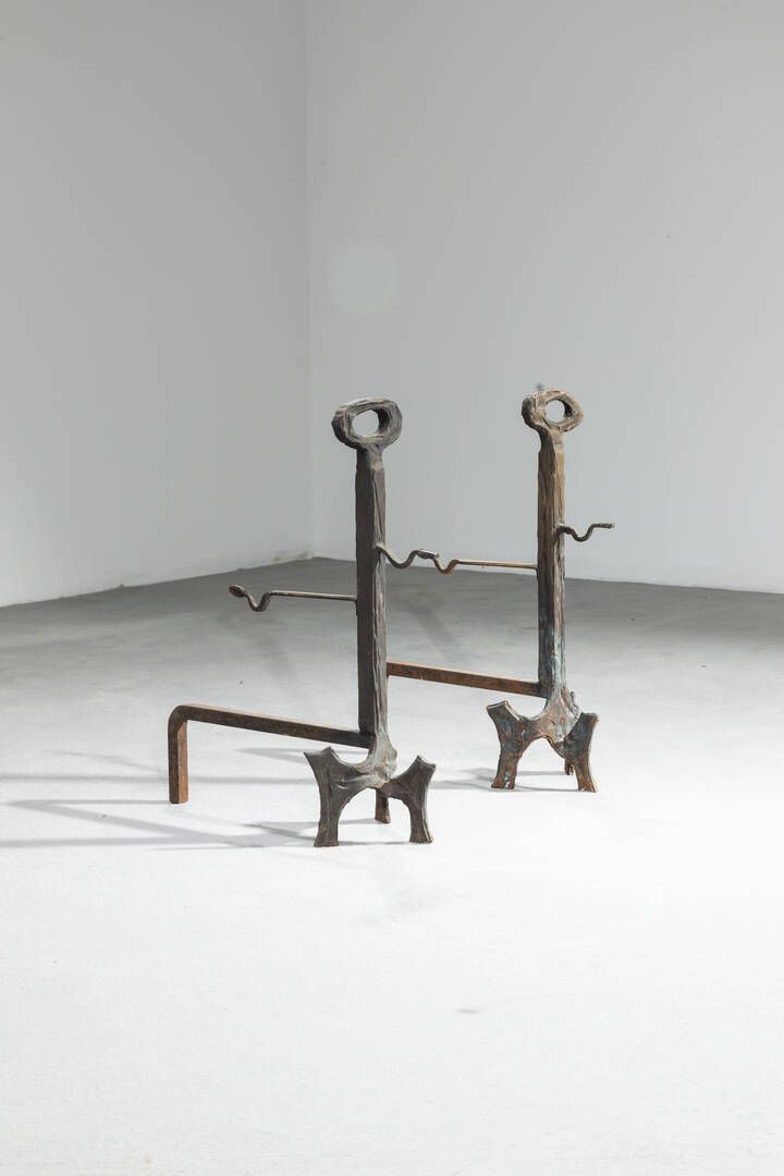 Coppia di alari brutalisti in bronzo. Anni '60 cm 57x45 Difetti