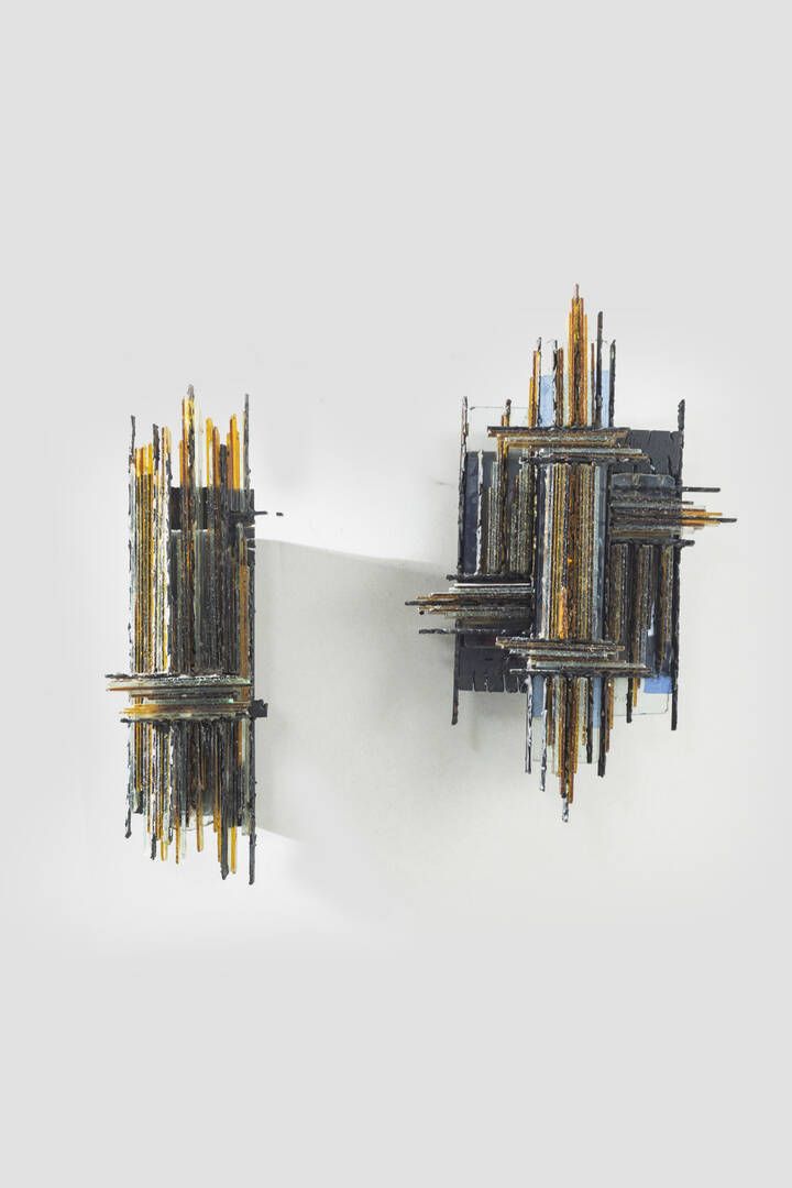 Struttura in metallo e vetro di Murano colorato lavori a listelli. Anni ’70 h cm 61x38x14 5 h cm 60x18x11