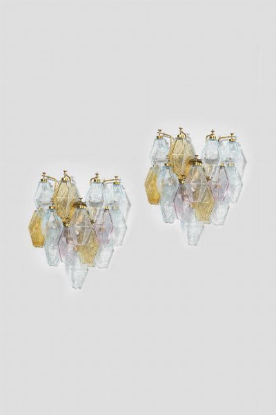 Struttura in ottone elementi in vetro di Murano a forma di poliedri colorati. Anni '60 h cm 40x37x20