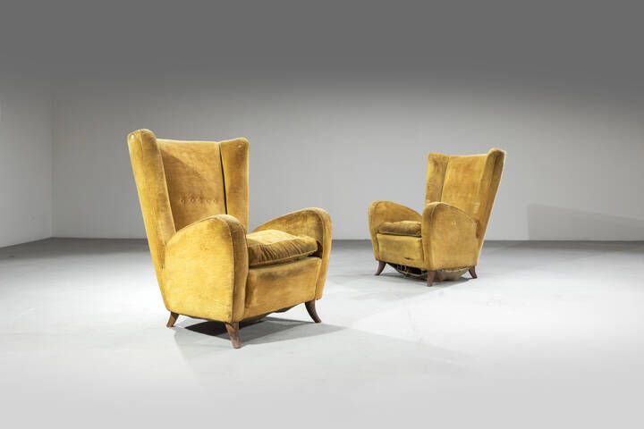 Struttura in legno imbottitura rivestita in tessuto. Anni '50 cm 90x75x80 Difetti