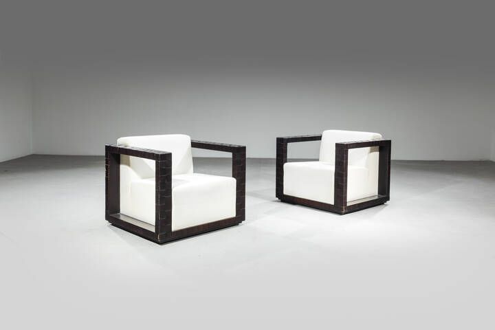Struttura in legno e cuoio imbottitura rivestita in tessuto. Prod. Bonacina Pier Antonio anni 2000 cm 70x82x77 Difetti