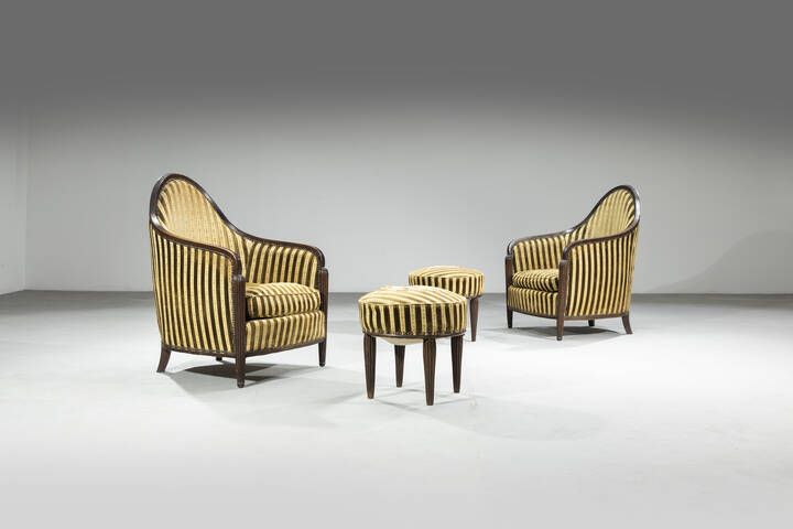 Coppia di poltrone con poggiapiedi