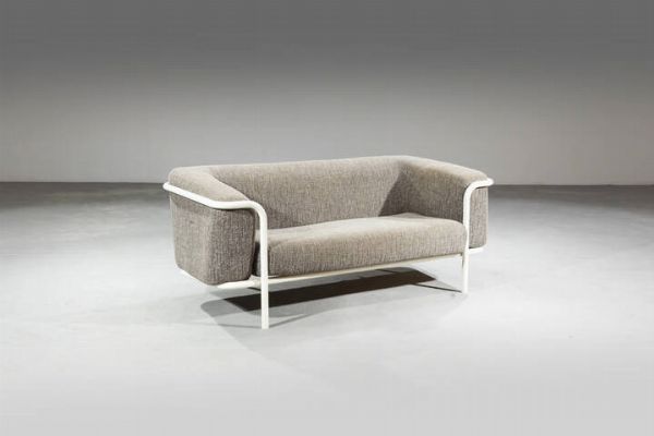 Struttura in metallo verniciato e imbottitura rivestita in tessuto. Anni '70 cm 68x167x84 Difetti