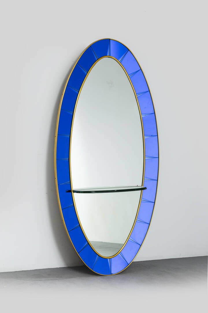 Bordo in vetro colorato particolari in ottone e vetro specchiato. Anni '50 cm 212x110 Difetti