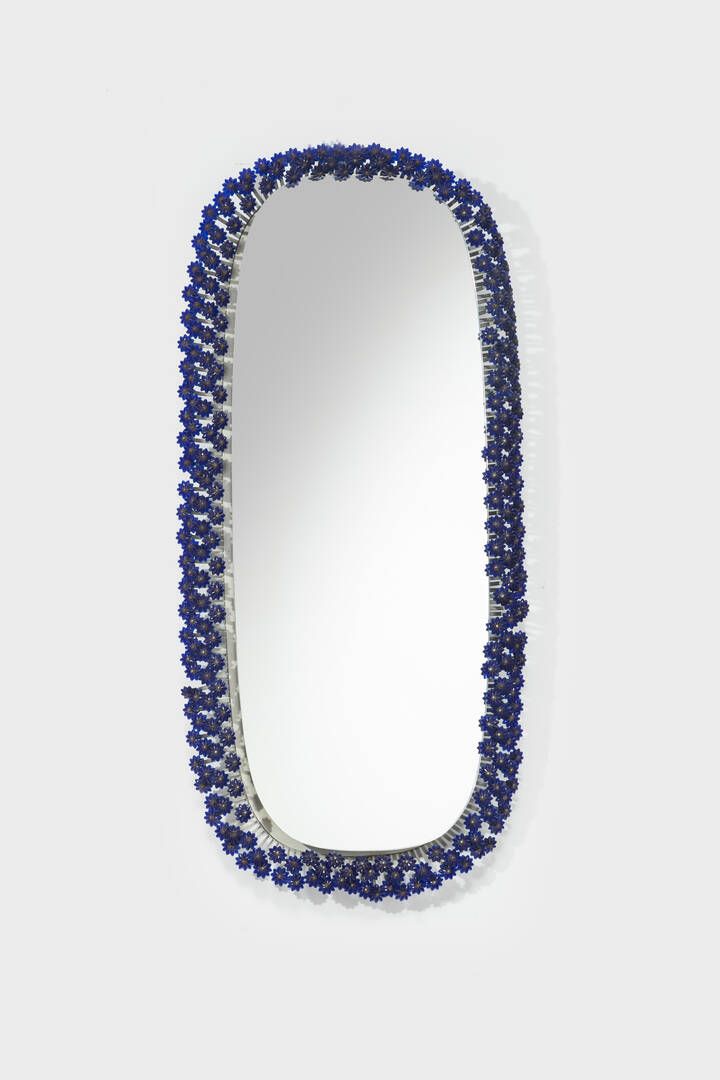 Elementi decorativi floreali in materiale plastico struttura in metallo verniciato e vetro specchiato. Prod. Rupert Hikoll anni ’50 cm 115x54 Difetti