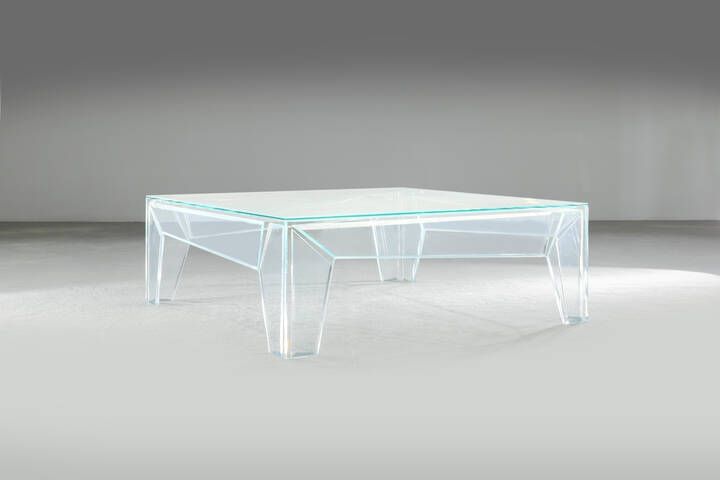 Vetro trasparente con incusse lastre extralight a forme geometriche. Etichetta del produttore Prod. Glas Italia 2019 cm 42 5x120x120