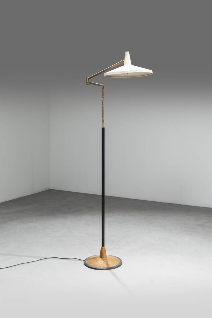 Struttura in metallo verniciato ottone ramato e diffusore in metallo verniciato. Anni '50 h (max) cm 195x67