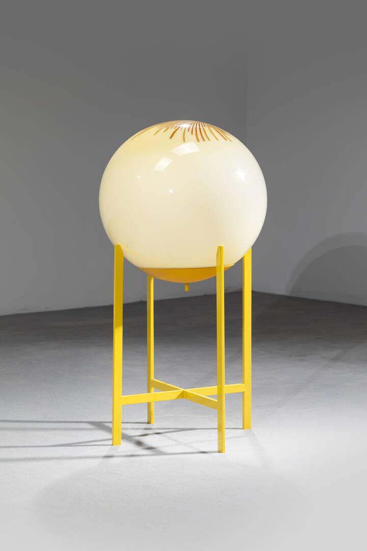 Struttura in metallo verniciato diffusore in vetro colorato. Anni '70 h cm 100x50 Difetti