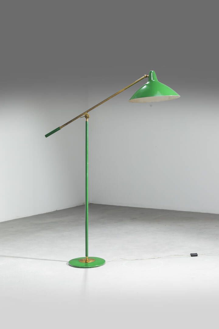 Struttura e diffusore in metallo verniciato e particolari in ottone. Anni '50 h cm (max) 188x39 Piccoli difetti