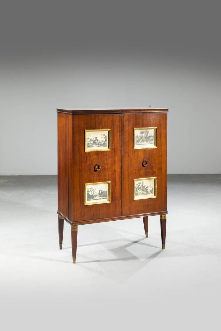 Struttura in legno decori a stampe e ripiani in vetro. Anni ’40 cm 140x98x44 Difetti