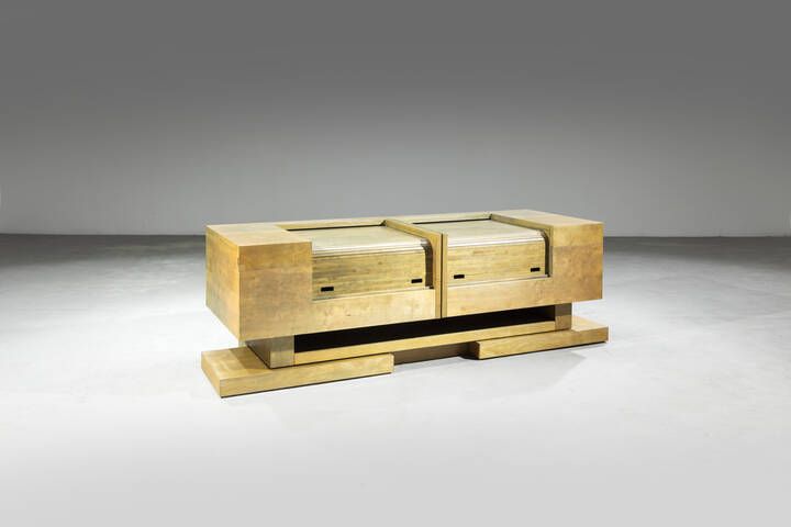 Struttura in legno ante a scorrimento aperture a serranda. Prod. Atelier Nava Desio Milano anni ’70 71x194x65 (apertura massima 250 cm)
