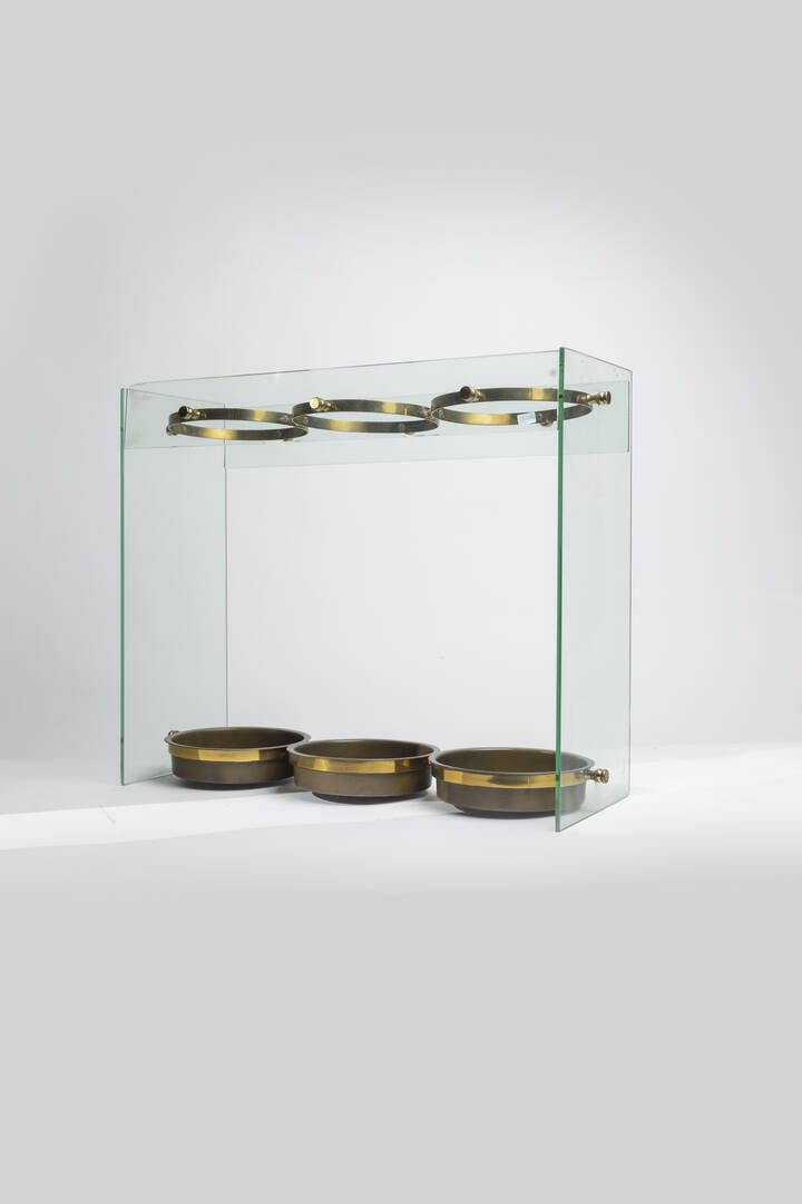 Portaombrelli in vetro vitrex e ottone. Anni '50 Probabile produzione eseguita per gli uffici Vetrocoke Marcato Vitrex cm 47 5x57x21 Scheggiato sul bordo