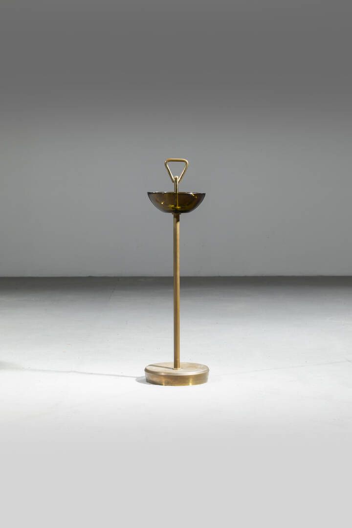 Struttura in ottone posacenere in vetro di forte spessore. Anni '60 cm 73x21 Difetti e piccola sbeccatura