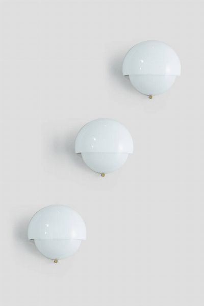 Metallo verniciato vetro bianco e particolari in ottone. Prod. Artemide anni '70 h cm 23x9