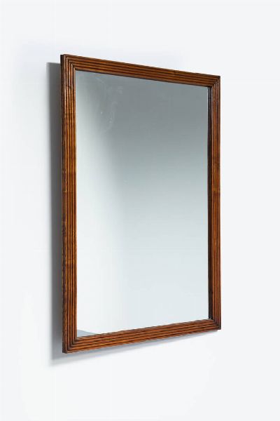 Specchio con cornice a listelli in legno. Anni '50 cm 109x78x2 5