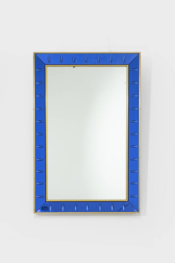 Bordo in ottone ed elementi in vetro colorato vetro specchiato. Anni '50 cm 90x60