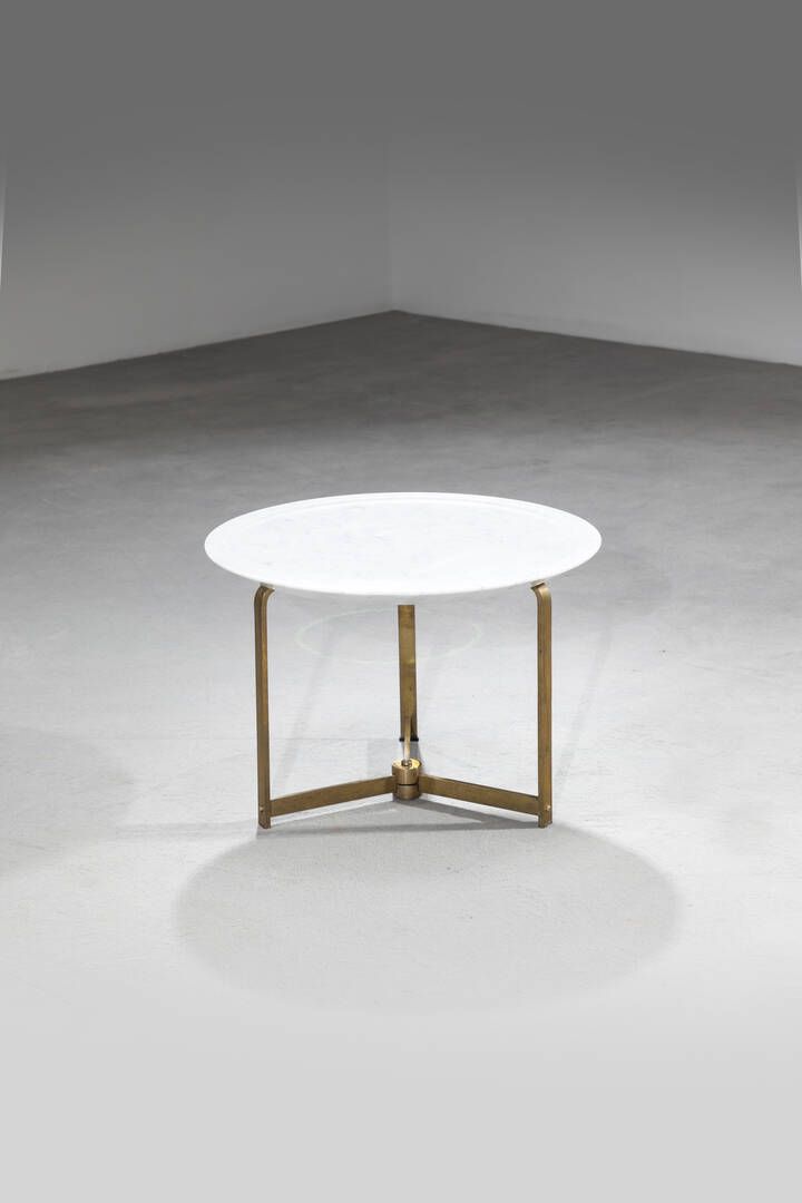 Struttura in ottone e piano in marmo tornito. Anni '60 cm 38x54 5x54 5 Difetti e restauro del piano