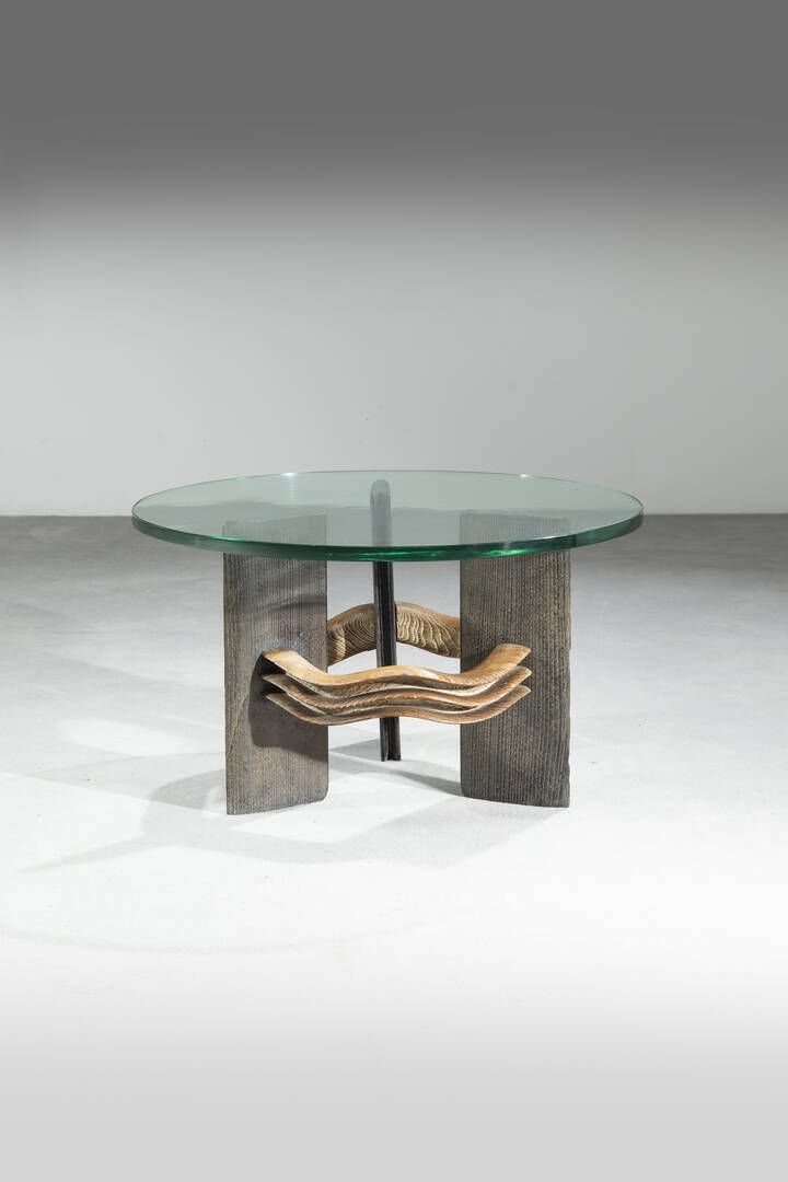 Struttura in legno e piano in cristallo molato. Prod. Valabrega Italia anni '40 circa h cm 45x80