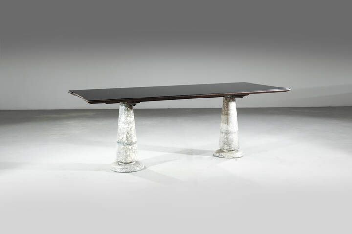 Basi in marmo piano in legno con vetro colorato applicato. Anni '60 cm 80x224x90 Difetti e piano in vetro rigato