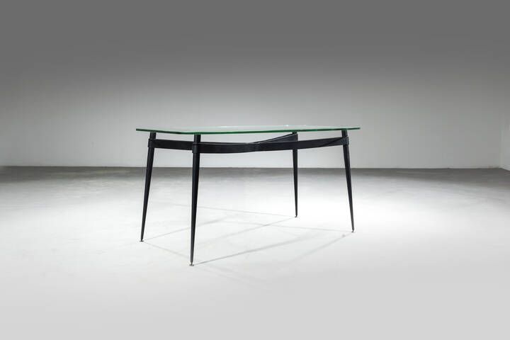 Struttura in metallo e piano in vetro. Anni '50 cm 80x59x81 5