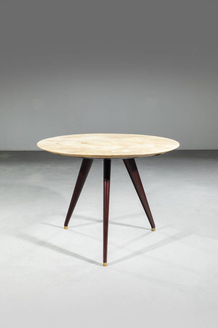 Struttura in legno piano in legno rivestito in pergamena e puntali in ottone. Anni '50 cm 78x105x105