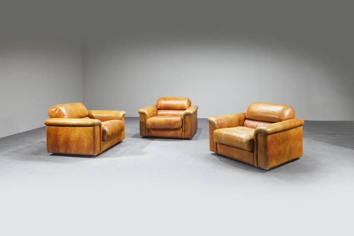 Struttura in legno imbottitura rivestita in pelle. Anni '70 cm 70x100x95 Difetti