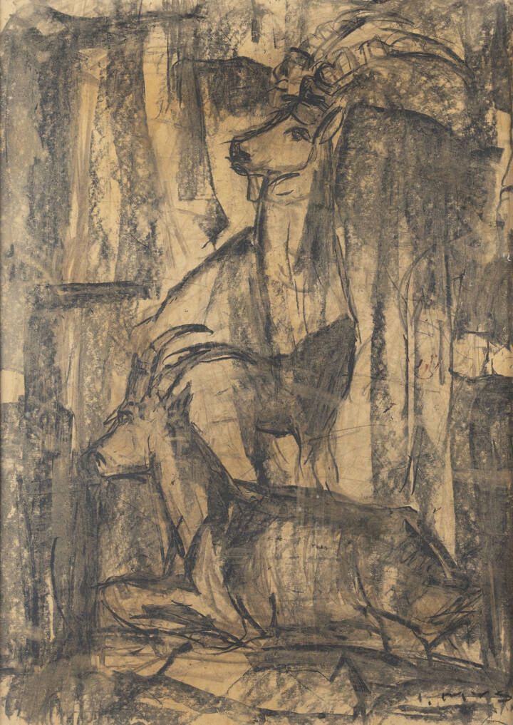71x50 carboncino su carta Opera firmata in basso a destra; al retro dedica ad personam rilasciata a St Vincent nel 1966