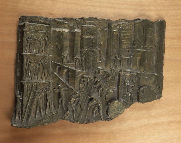 42x58 bassorilievo in bronzo es. 3/3 Opera firmata e numerata in basso a destra Autentica dell'artista su fotografia rilasciata nel dicembre 1971