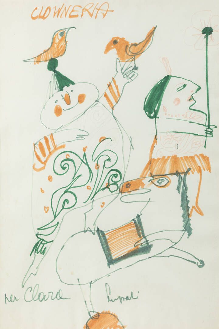 66 5x44 5 pennarello su carta Opera firmata in basso verso il centro Dedica ad personam Certificato di autenticità del Museo Luzzati Genova