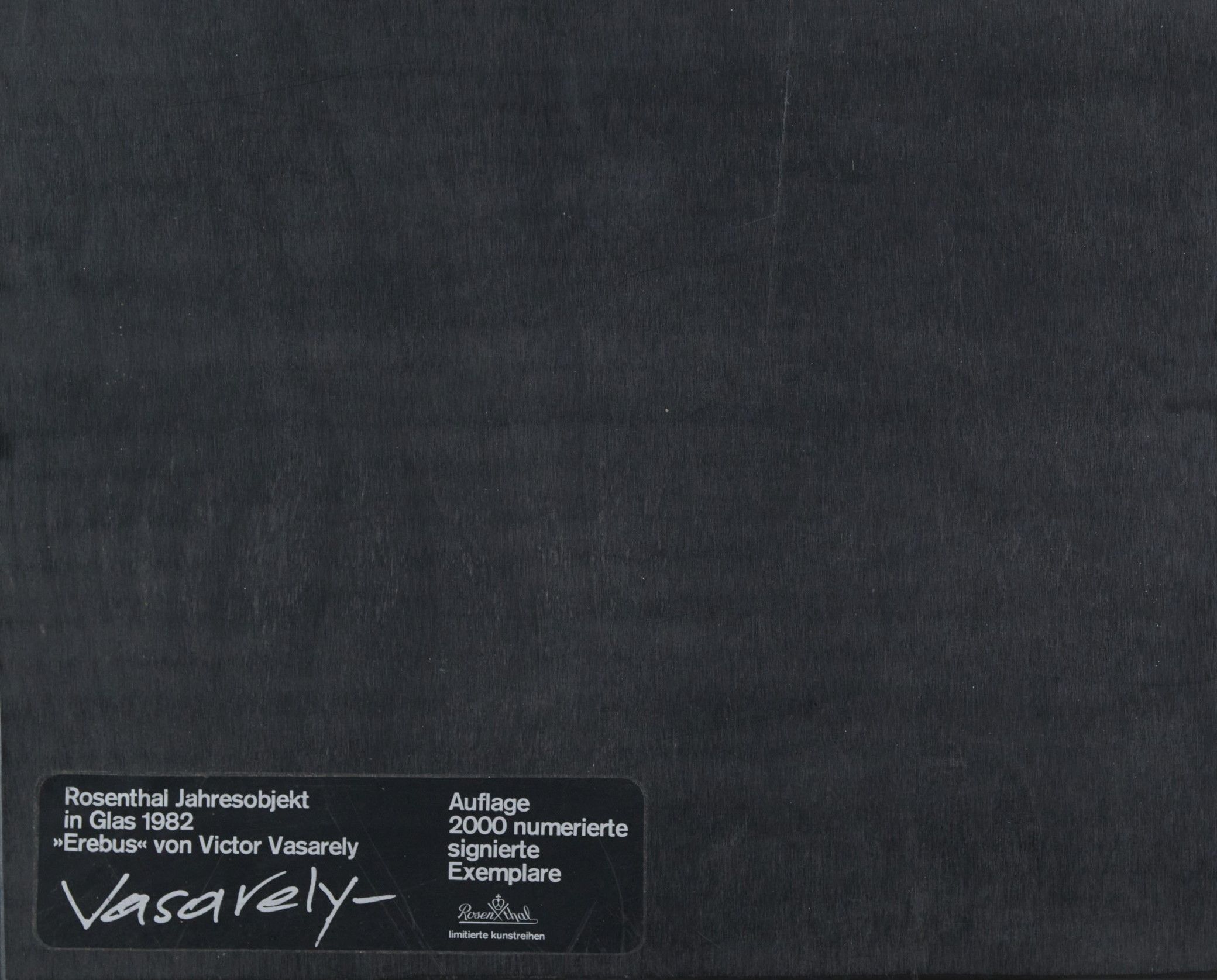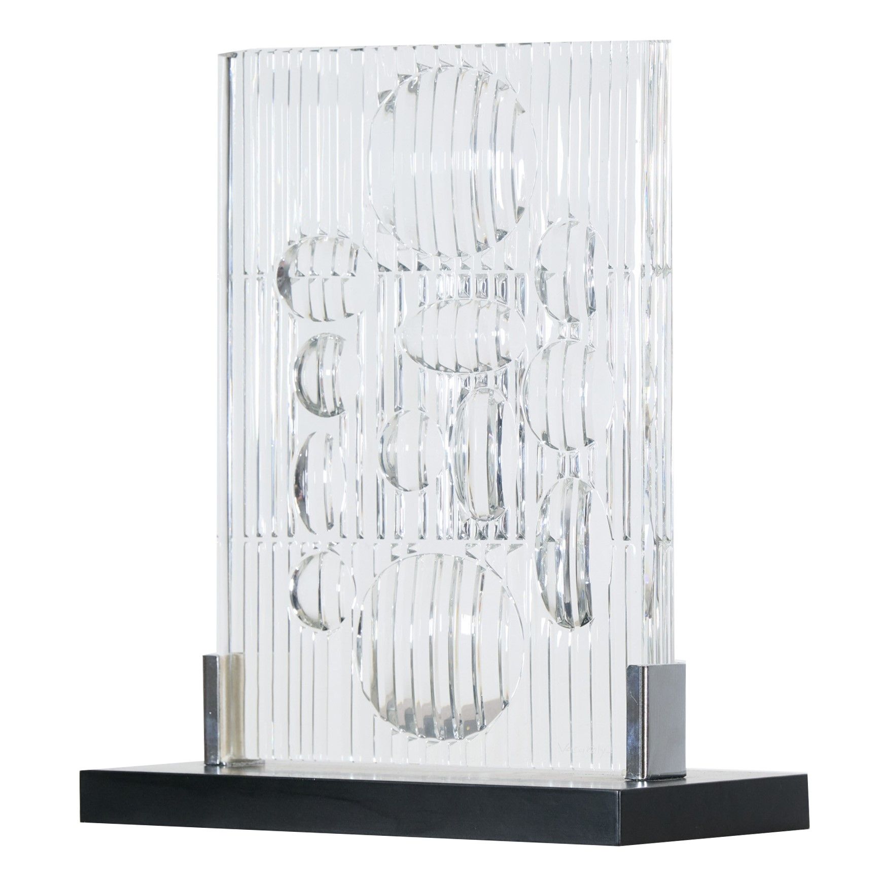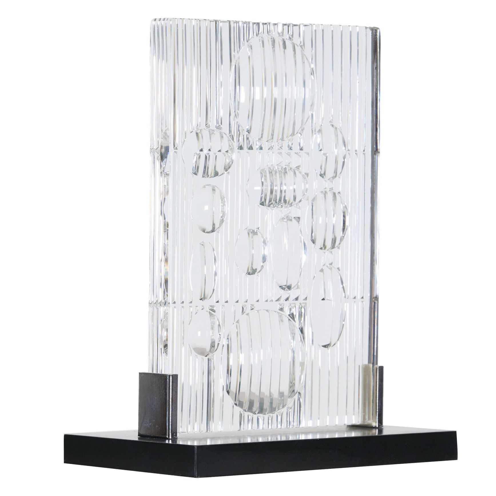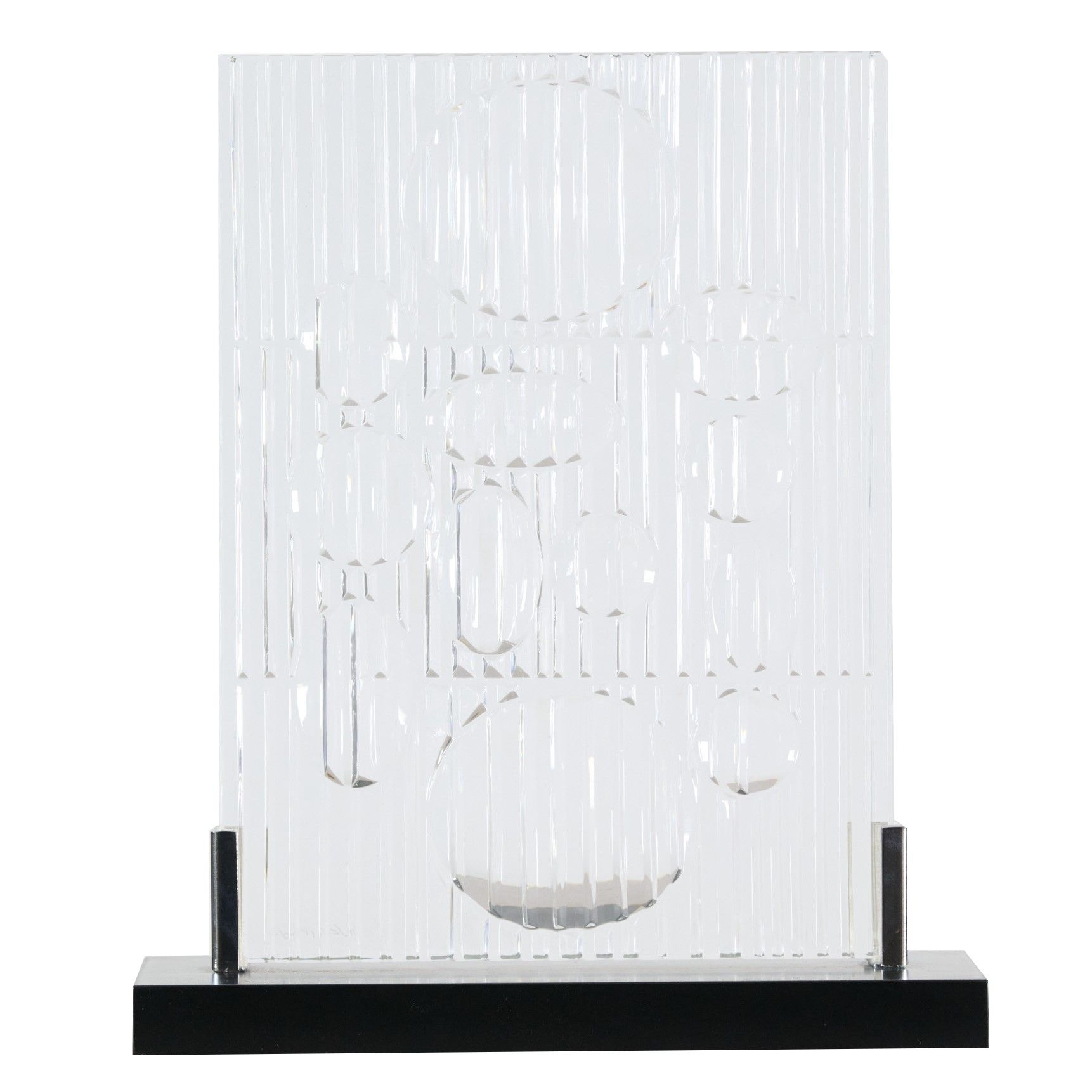 Scultura in cristallo di cm. 32,5x24,5x2,5, tot. misure con base in legno 35x30,5x15 1982 Firma in basso a destra.. Sotto la base: etichetta Limitierte Kunstreihen Studio-Linie Rosenthal con tiratura. L'opera è corredata della scatola originale. Sopra il cofanetto: etichetta con descrizione.