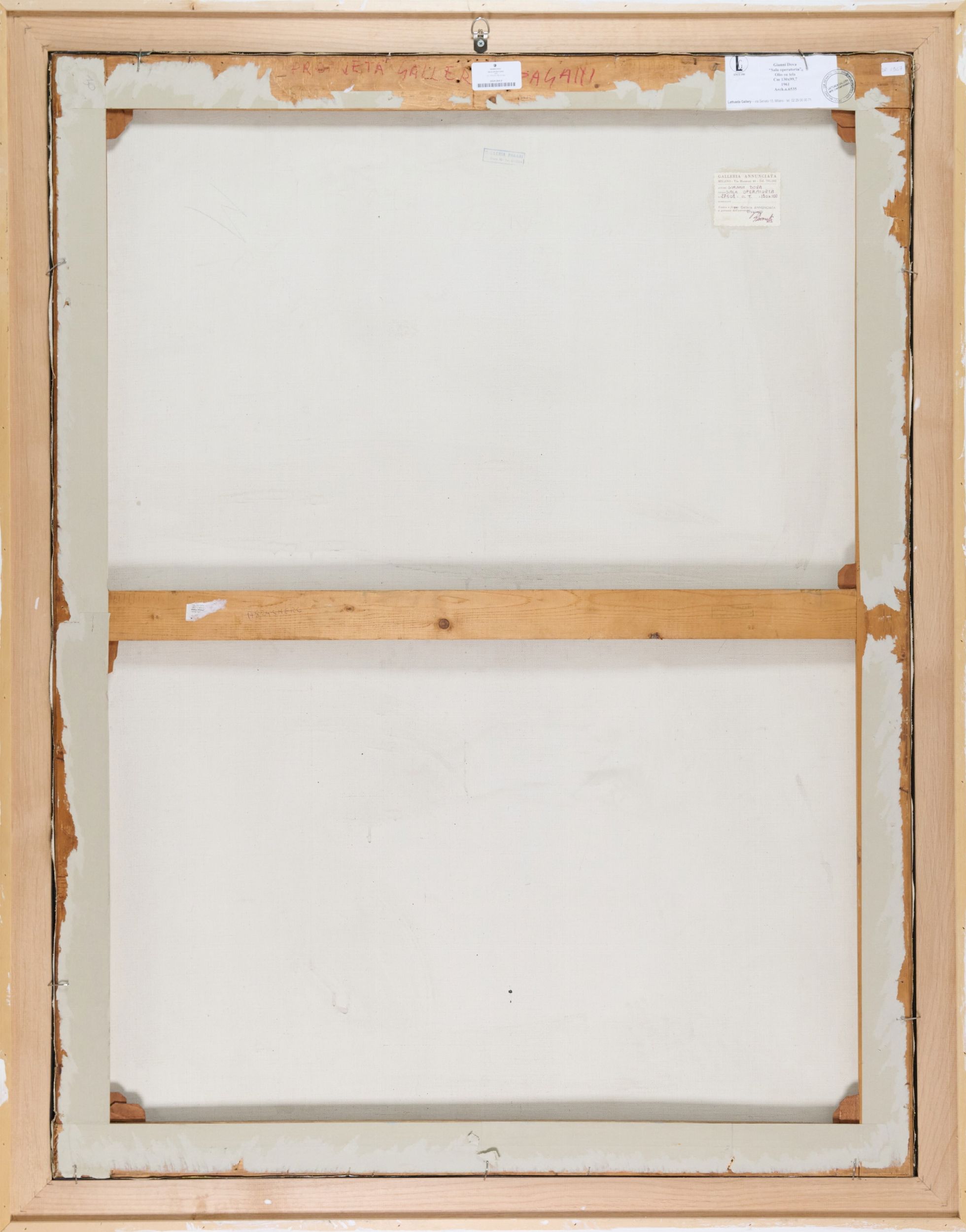 1960 Firmato in basso a sinistra. Sul verso: firma e titolo. Etichetta 'Galleria Annunciata', Milano, con descrizione. Etichetta e timbro 'Galleria Lattuada', Milano, con descrizione. Timbri 'Galleria Pagani, Milano.