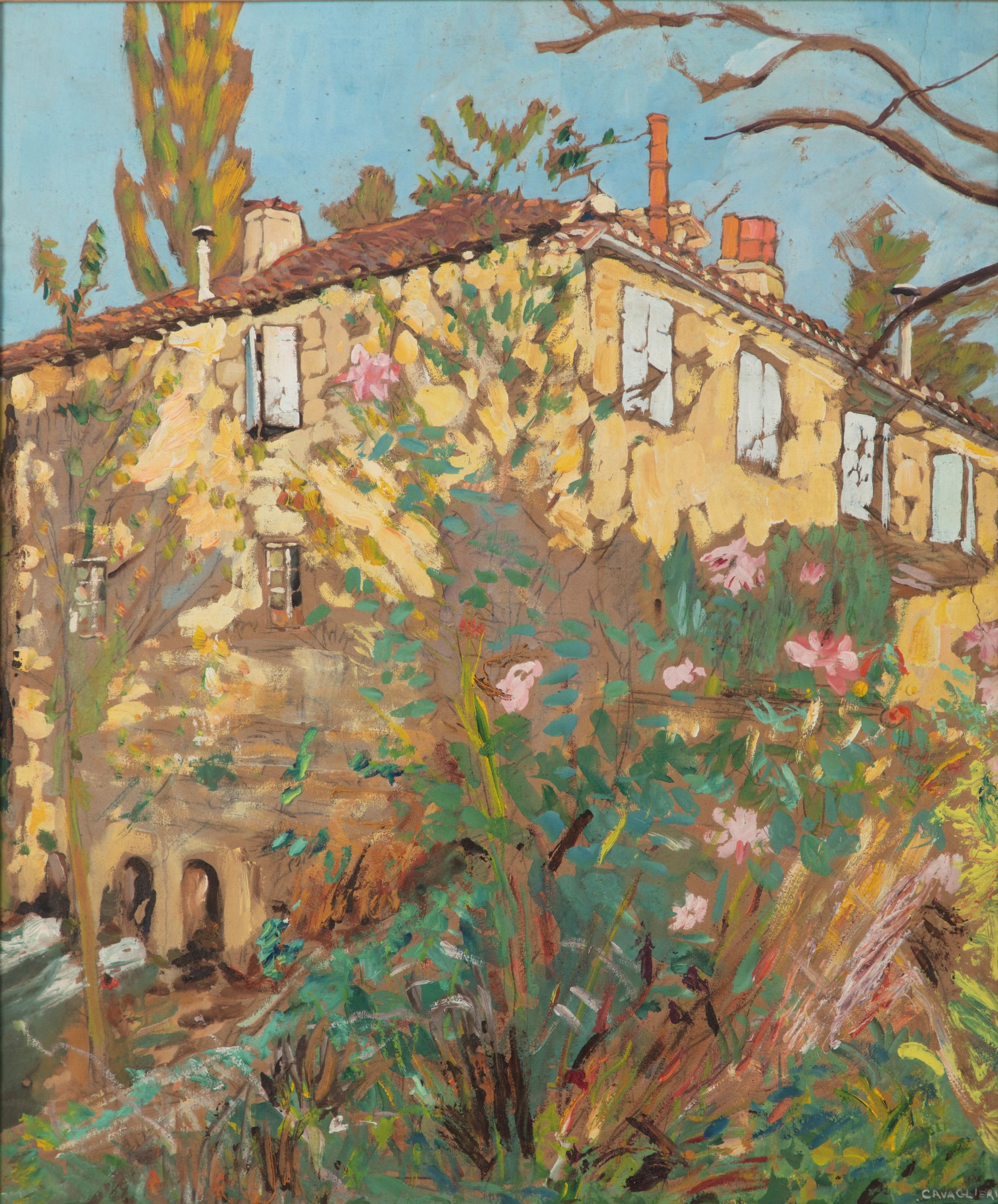 firmato in basso a destra: CAVAGLIERI al retro titolato e timbro della Galleria d'Arte Barbaroux, Milano