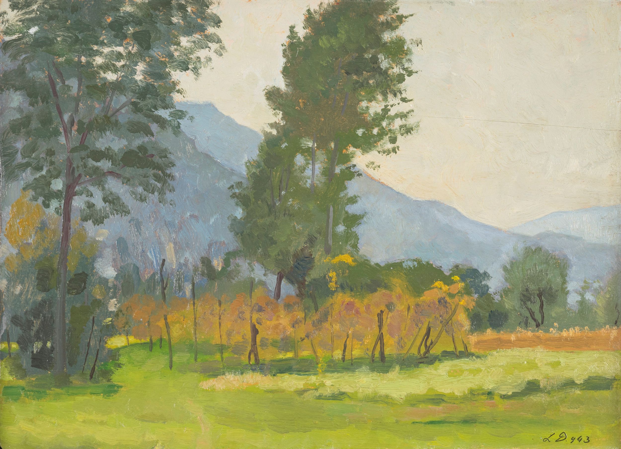 1943 siglato e datato in basso a destra: L. D. 943  al retro firmato, titolato e timbri della galleria d'arte Antologia di Monza