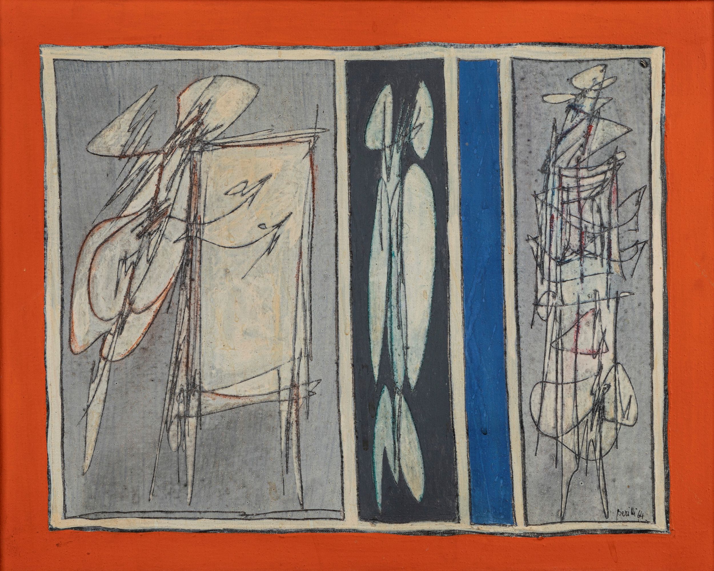 1964 Firmato e datato in basso a destra: Perilli 64 Firmato, datato e titolato al verso: Achille Perilli, 1964, I divergenti