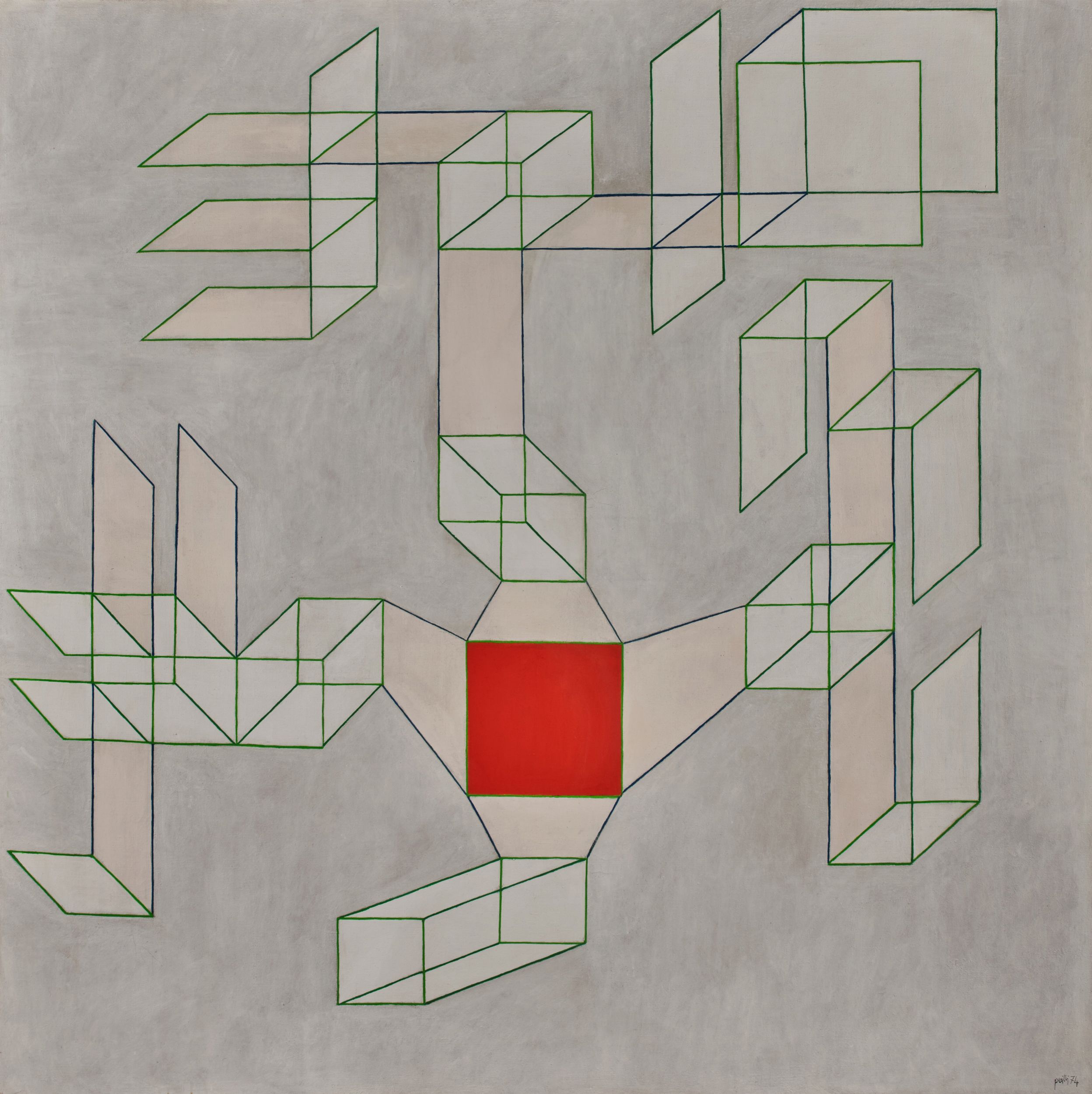 1974 Firmato e datato in basso a destra: Perilli 74 Firmato, datato e titolato al verso: Achille Perilli, 1974, L'acchiapasole