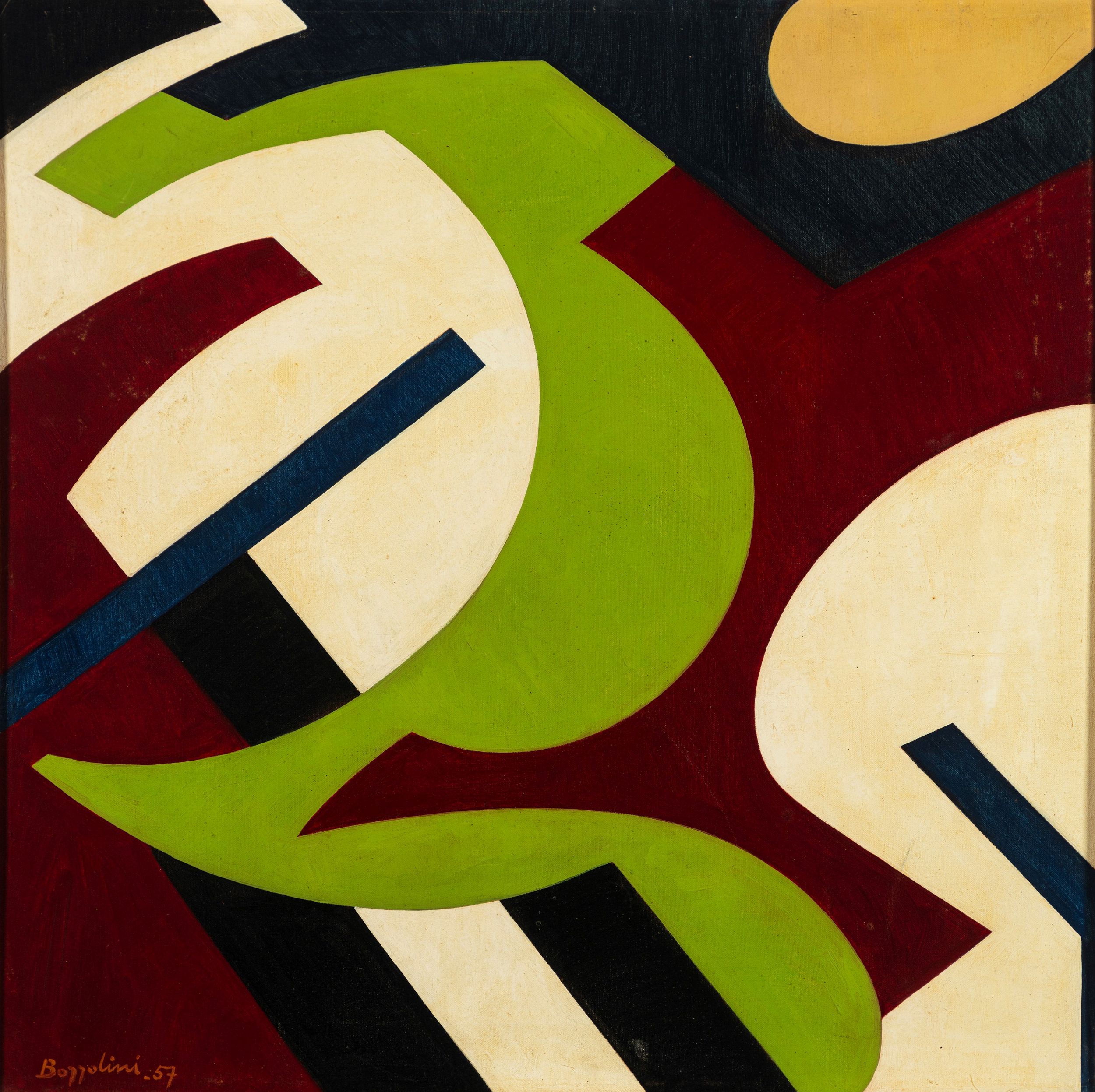 1957 Firmato in basso a sinistra: Bozzolini '57 Firmato, titolato e datato al verso: Bozzolini, 'Réncontres', 1957 Timbro illeggibile al verso